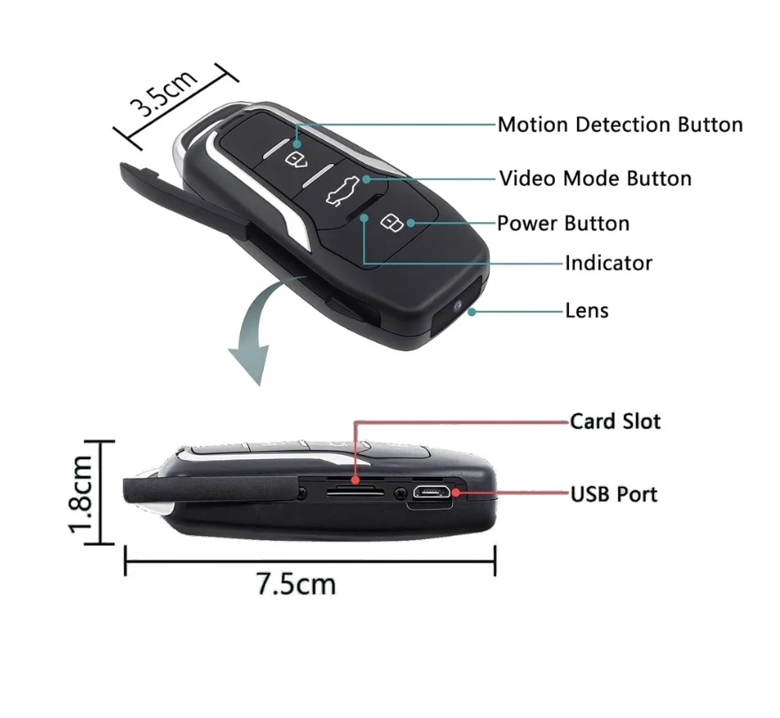 Model nou de camera spion ascunsa in breloc/telecomanda auto.