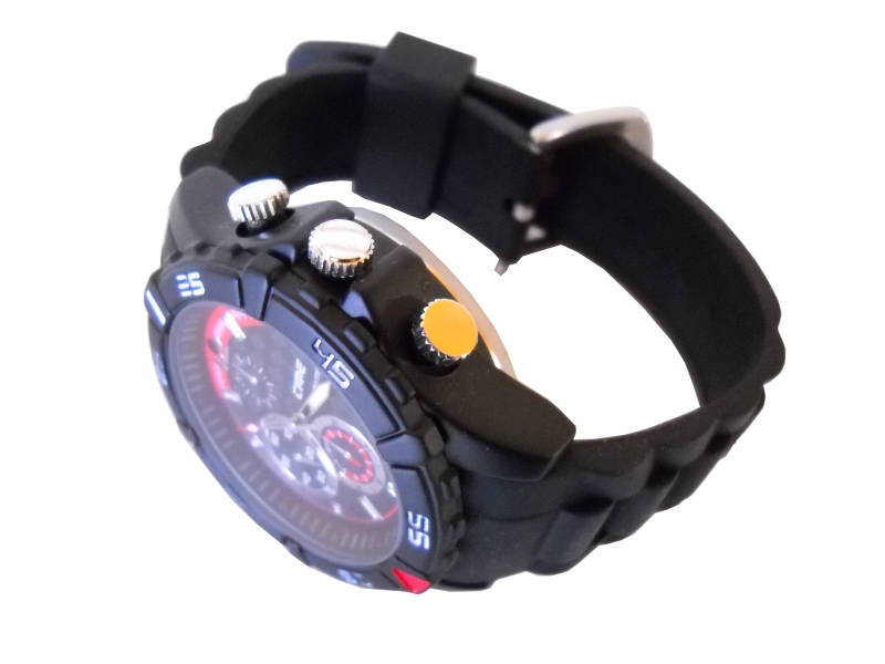 Primul model de ceas de mana cu camera ascunsa care imbina rezistenta la apa cu un senzor HD9712 cu sensibilitate crescuta la lumina si leduri IR pentru filmare pe timp de noapte.